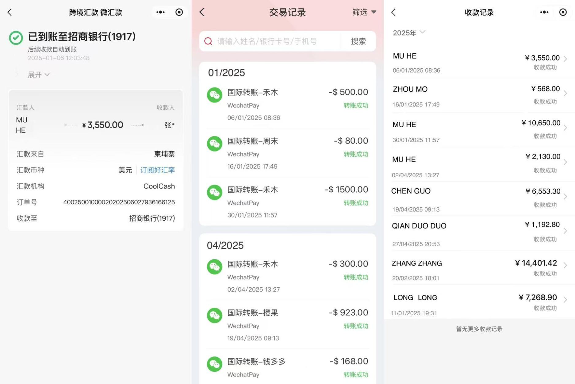 像阿泽这样在柬埔寨工作的中国人,有着强烈的跨境汇款需求,却苦于没有安全高效的渠道。针对这一痛点,小易支付打造了自己的国际汇款体系。可直接将美元汇款至微信或支付宝钱包,实时按汇率折算成人民币到账。不论国内收款人使用哪家银行,手续费都相同,无额外附加费用,每一笔汇款都经过微信或支付宝官方的风控审核。“通常在不到一分钟内就能到账——真真正正做到直薪——人民币直汇。”