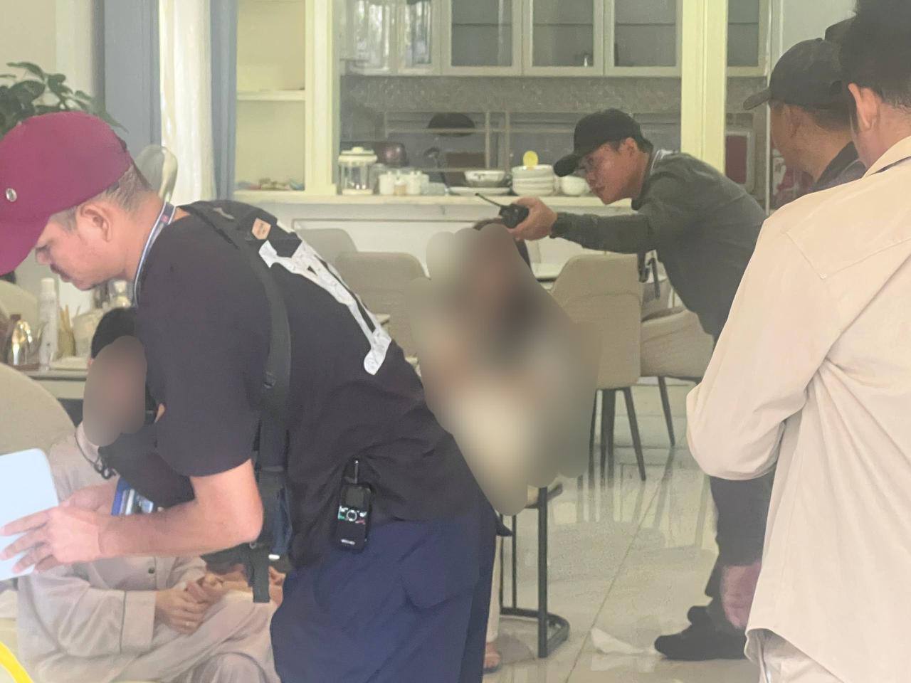 今日上午11点,金边炳发城的这栋别墅被几十个宪兵围捕,抓了几个中国人,6男2女,都是中国国籍,只有一个人有护照,所有人从缅甸偷渡过来的。现在场面还在僵持着,据说在里面搜索出来有手枪,还有K粉,还有涉嫌绑架的嫌疑。最近这几个月,很多缅甸那边偷渡过来的人,再加上年底了,到处都很乱,请大家注意安全